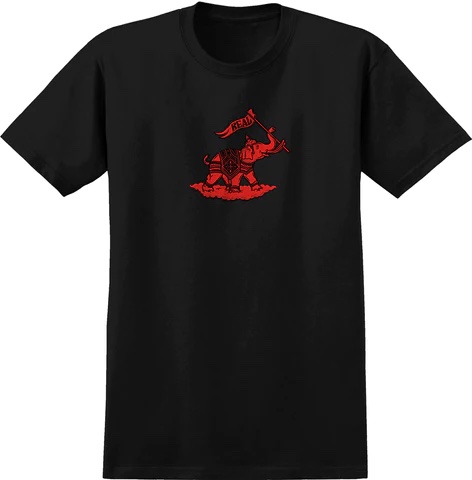 Black shirt with screen printed red elephant